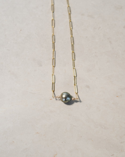 Floating Tahitian Pearl on 14K Gold-filled Paperclip Chain